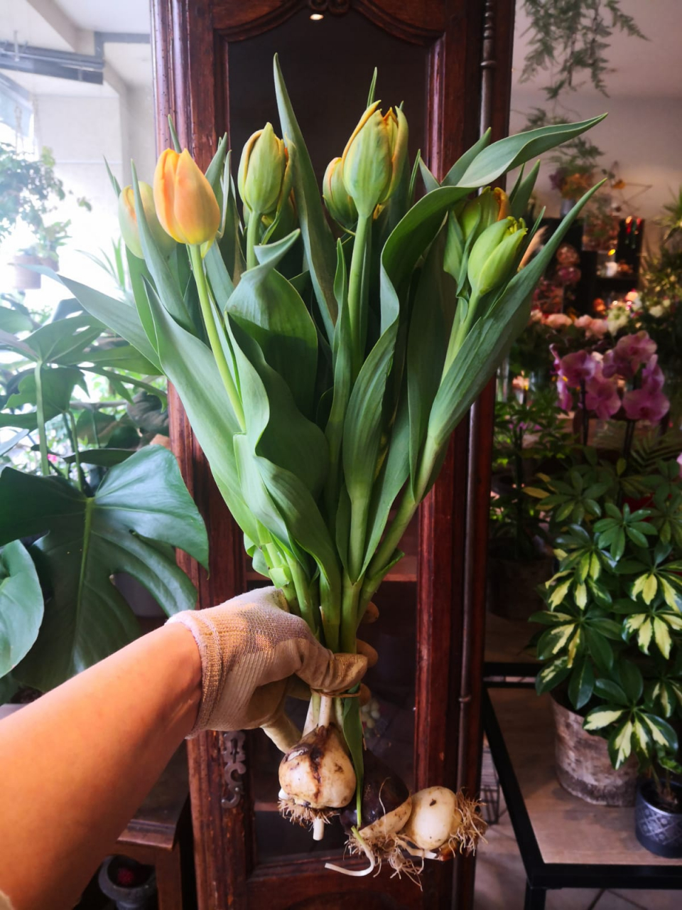 N'oubliez pas les tulipes sont des fleurs qui continuent à pousser après avoir été coupée. Pour une plus grande longévité mettez leur peu d'eau et évitez les endroits trop chauds. Sinon elles s'épuiseront à pousser et elles s’écrouleront en s'allongeant. N'hésitez pas à les recouper. Choisissez bien votre vase étroit et allongé ou très ouvert( placé en hauteur) leur laissant la possibilité de se coucher.