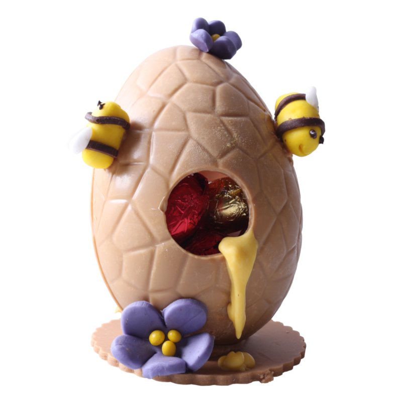 Grande première ! Nous vous offrons la possibilité de vous approcher d'une ruche sans aucune crainte ! En effet, nos abeilles ne piquent pas... Au contraire, elles vous invitent dans leur monde sucré et onctueux, au goût biscuité et légèrement salé. Des saveurs tendres pour fêter Pâques dans toute sa splendeur ! Et n'oubliez pas de goûter aux petits œufs à l'intérieur... Un plaisir sans fin !