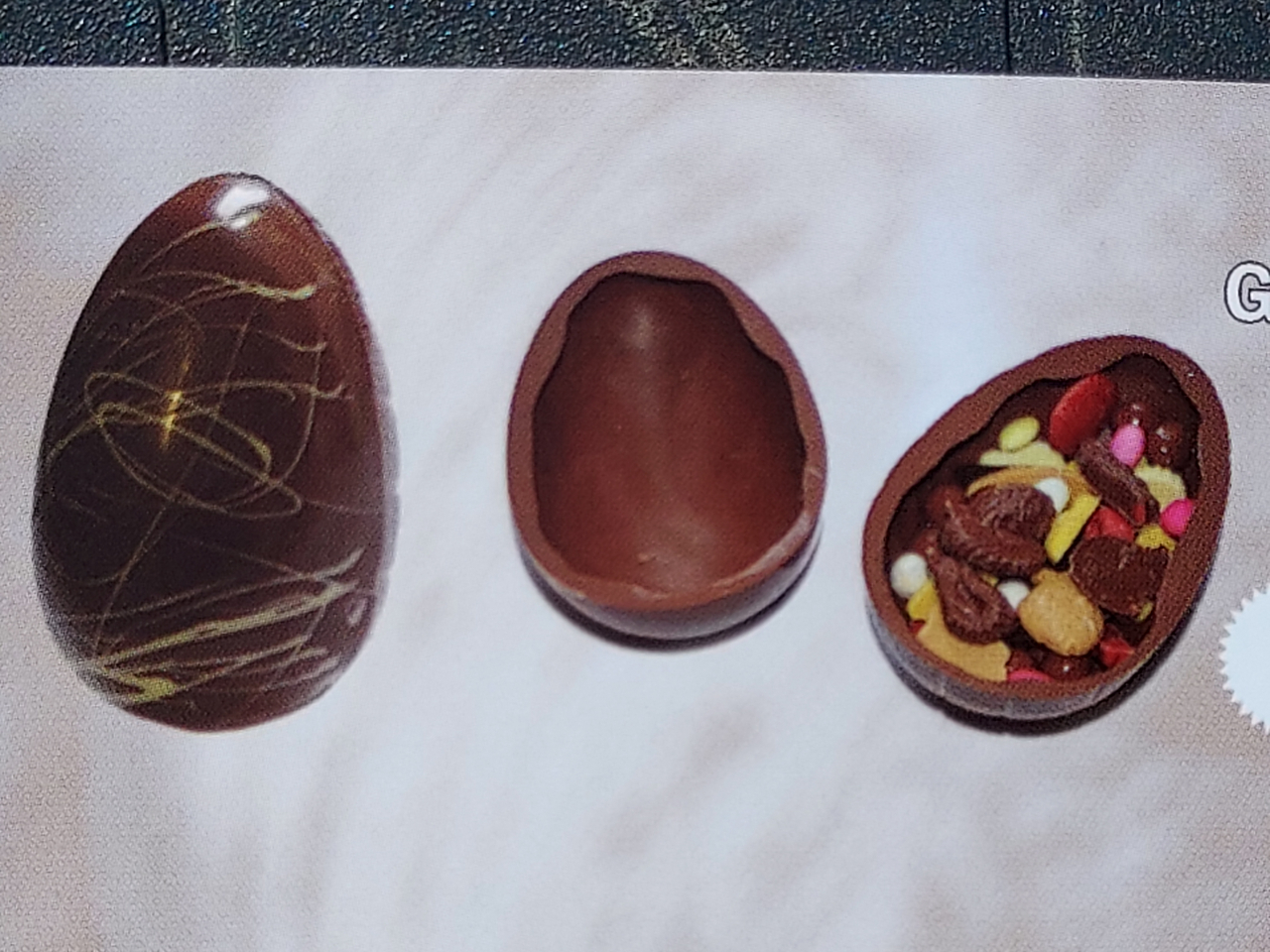 A l'approche des fêtes de Pâques, votre chocolatier, vous propose un petit oeuf (noir/lait), d'un poids de 55g pour une hauteur de 8 cm.