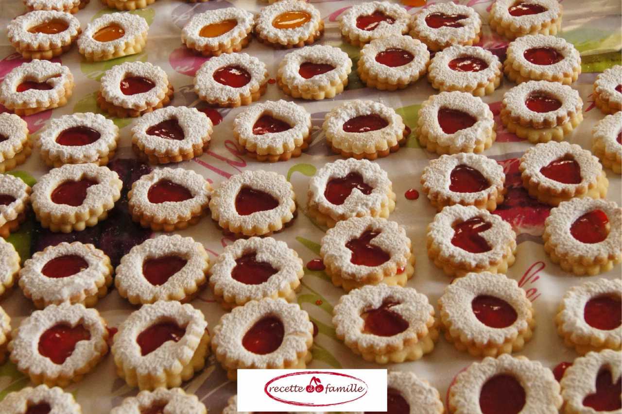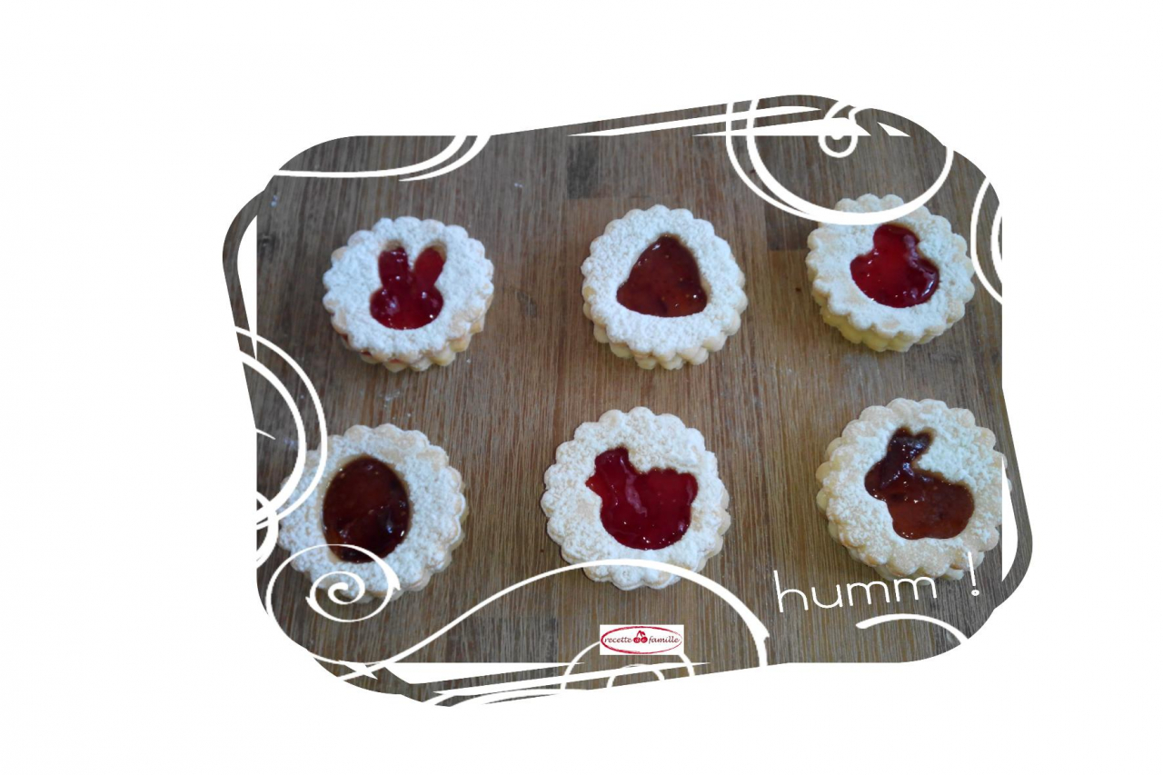 Ingrédients : Beurre, sucre glace, sucre vanillé, sel, blanc d'oeufs, farine, gelée de groseilles