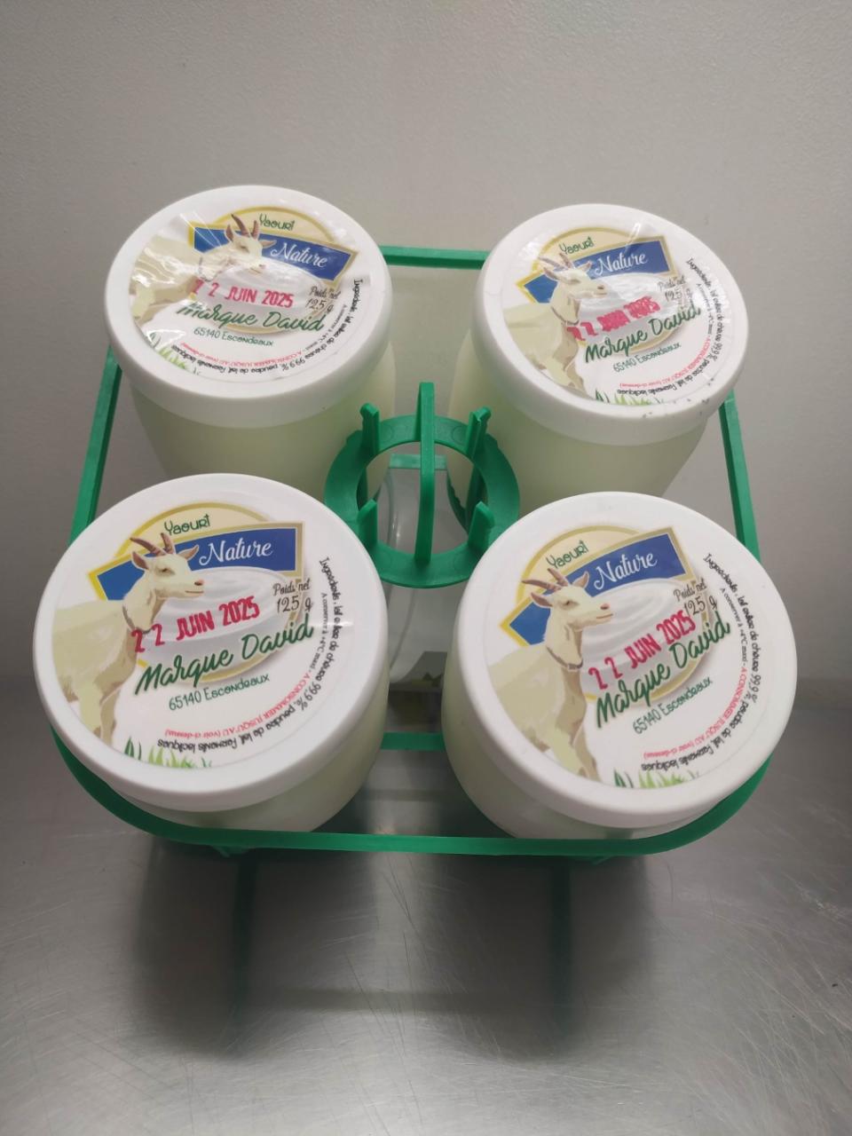 Yaourt realisé avec le lait cru entier produit sur l'exploitation avec les chèvres de race saanen et alpine.