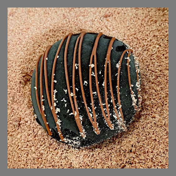 Glaçage Chocolat Noir : chocolat noir* (70%), Beurre de cacao*, huile de tournesol*.