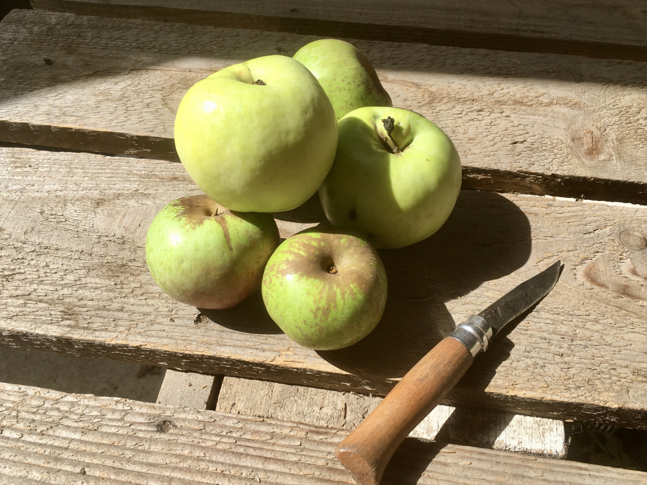 Mélange de pommes de garde de différentes variétés issues des pommiers de la ferme.