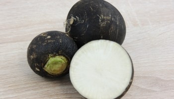 Radis noirs rond ou allongés selon la récolte. Le radis noir (Raphanus sativus) est une espèce très ancienne, dont on ignore l’origine exacte, mais qui se développe aujourd’hui à peu près partout et offre des bienfaits et vertus sur la santé. Il est surtout connu pour détoxifier le foie, les voies biliaires et soigner les troubles digestifs.