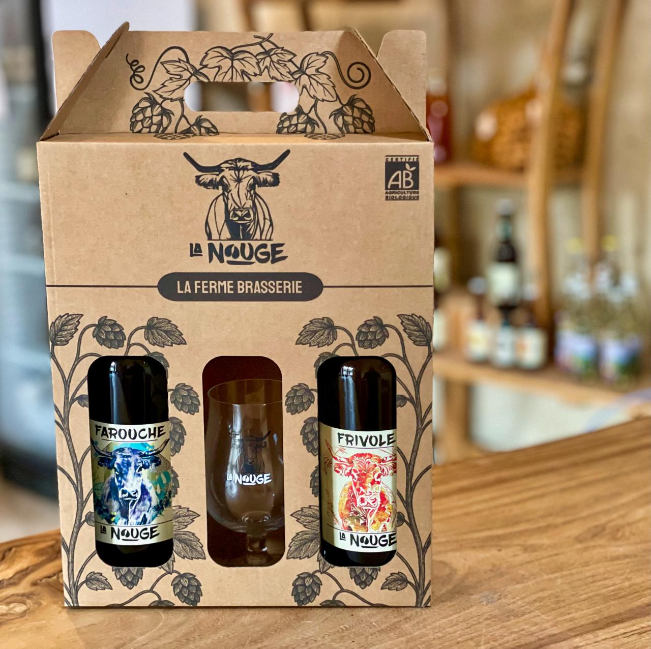 Coffret dégustation avec 2 bières 75cl et un verre sérigraphié La Nouge (bières faciles à boire)