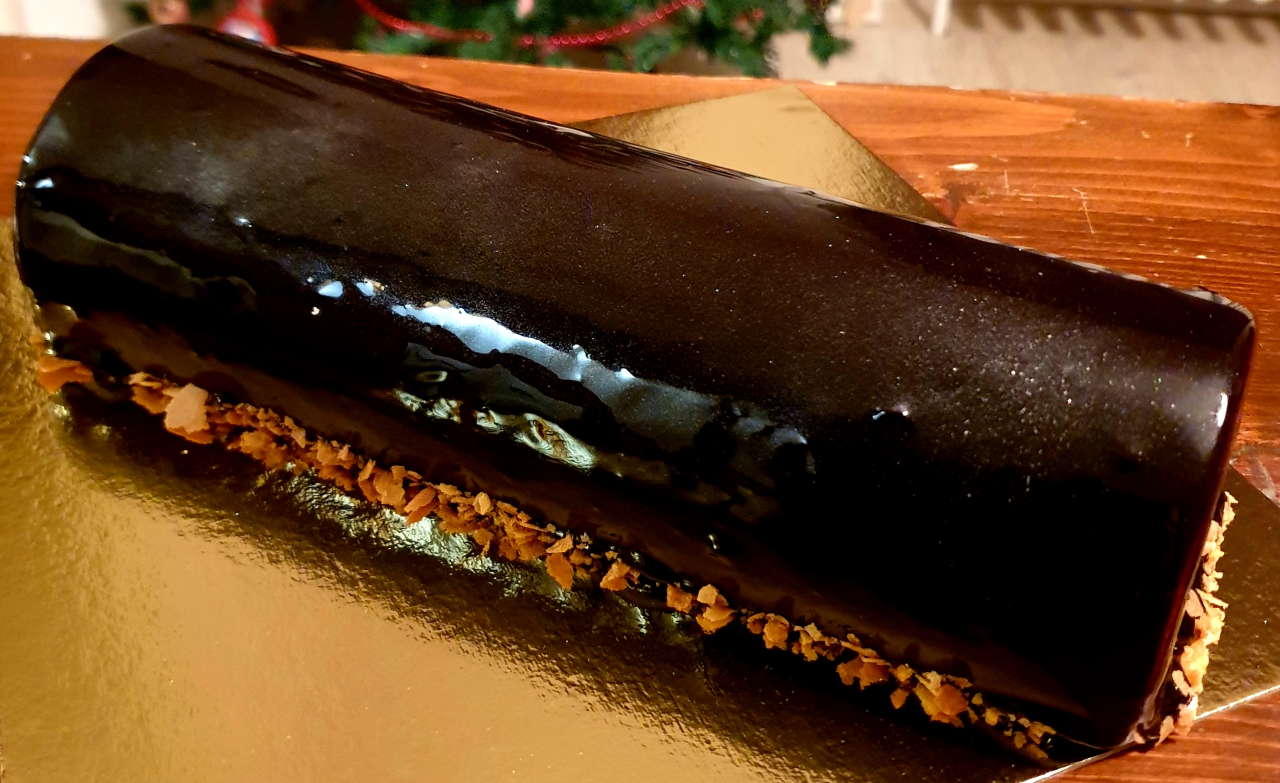 Ingrédients : chocolat noir 70%, crème, mascarpone, vanille bourbon, oeufs, sucre glace, poudre d'amande, cerises.