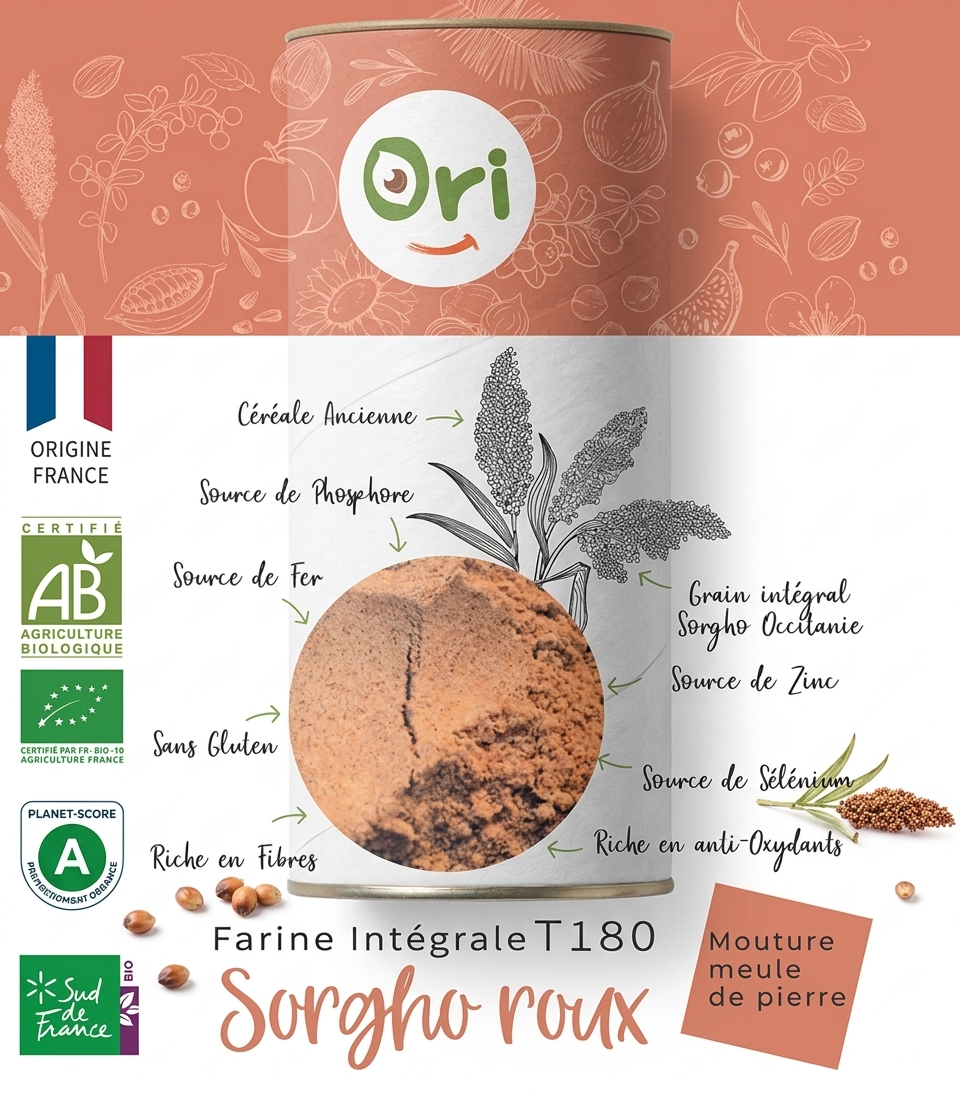ORI vous offre une expérience culinaire unique avec une farine intégrale du Sorgho Roux Occitan / Français.
