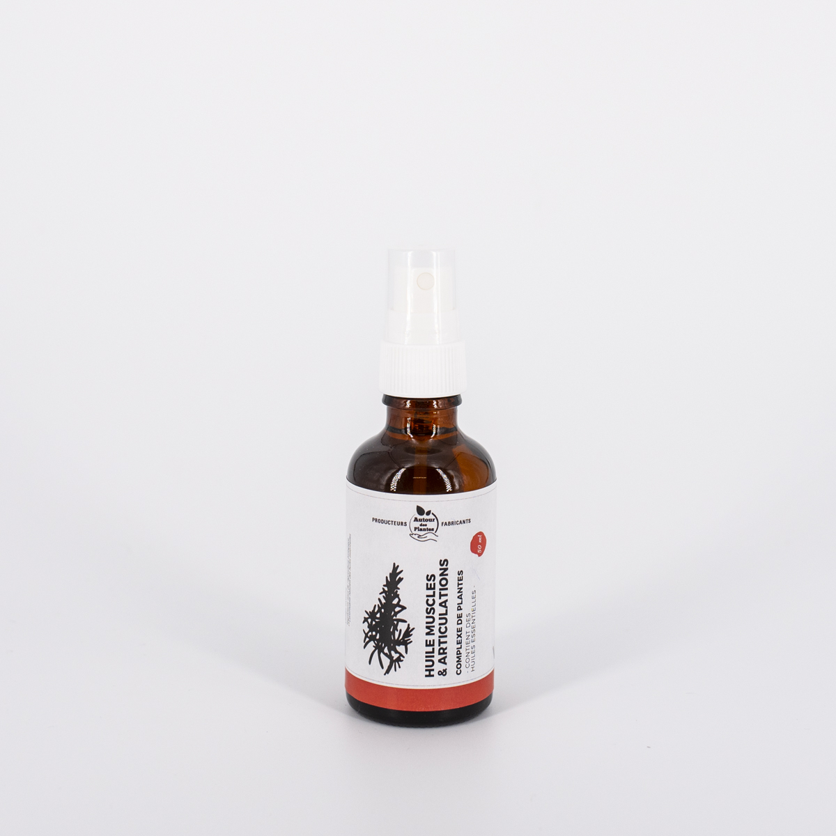 Cette huile est composée d'un macérât de laurier, romarin et reine des près et d'huiles essentielles de menthe poivrée, lavandin et laurier noble pour leurs propriétés relaxantes musculaires, apaisantes, antalgiques et anti-inflammatoires.