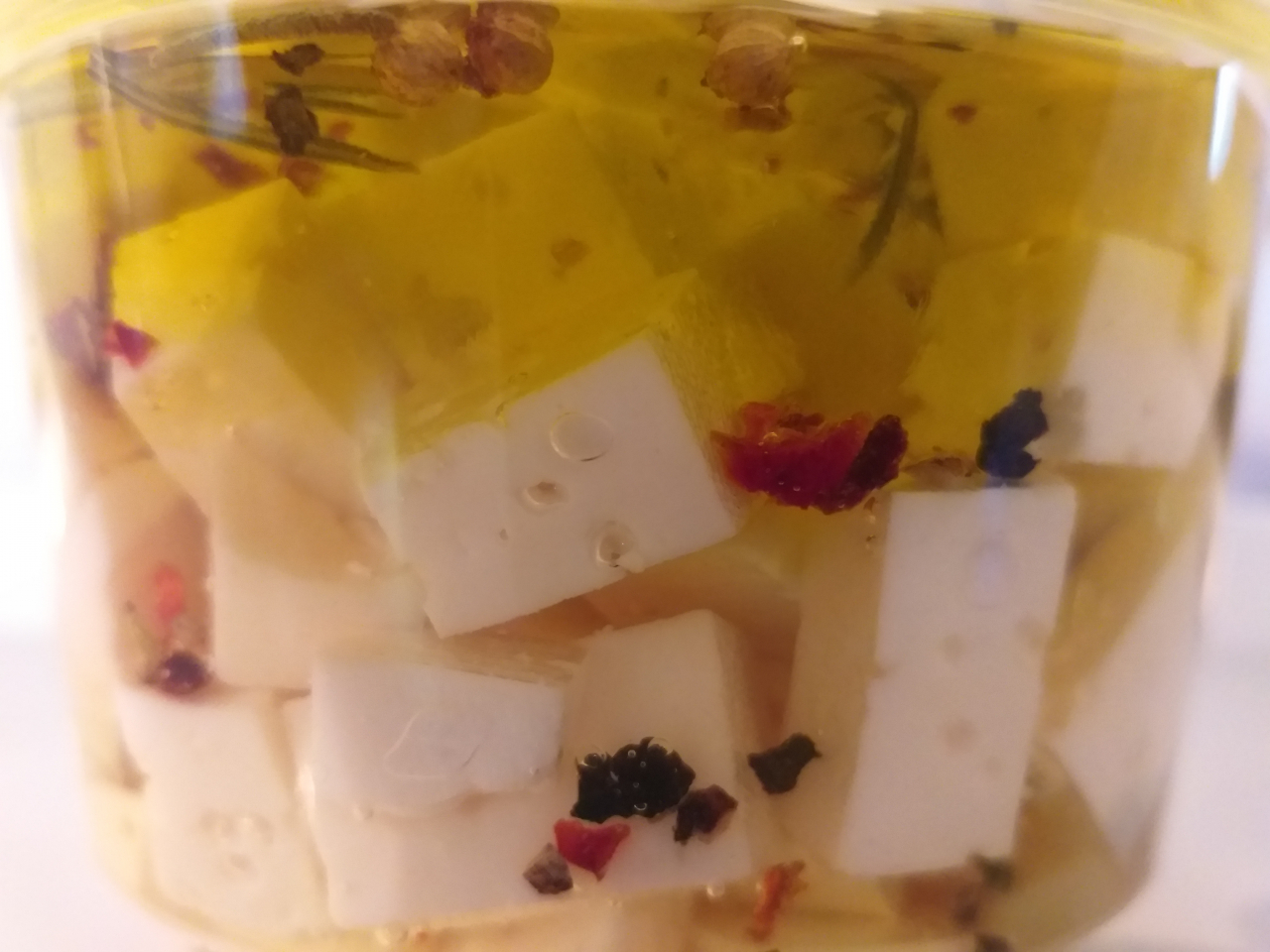 Tomme fraîche à l’huile agrémentée d’un duo poivrons.