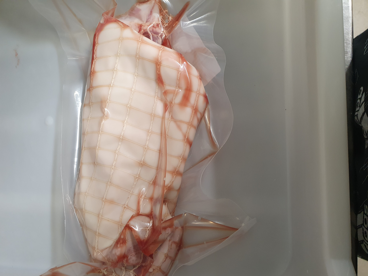 Tête de veau de lait sous vide ( nourri exclusivement au lait de sa mère ) langue à l'intérieur.