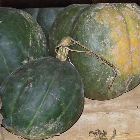 Très gros fruits ovoïdes vert foncé, pouvant atteindre 20 kg