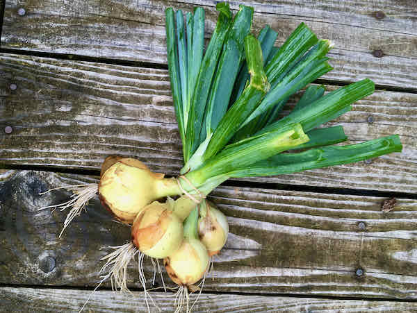 Nous proposons des bottes d'oignons jaunes d'environ 600gr. C'est le même oignons qui deviendra sec et vous sera vendu en vrac plus tard en saisons. A consommer plutôt dans des préparations cuisinées que cru.