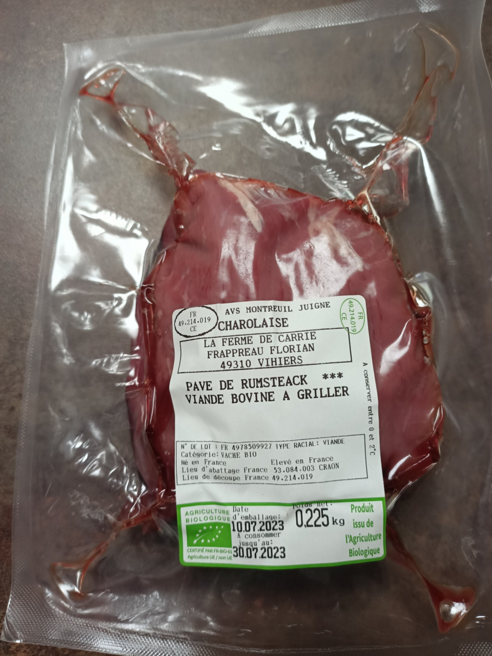 Viande bovine de race Charolaise en Agriculture Biologique.