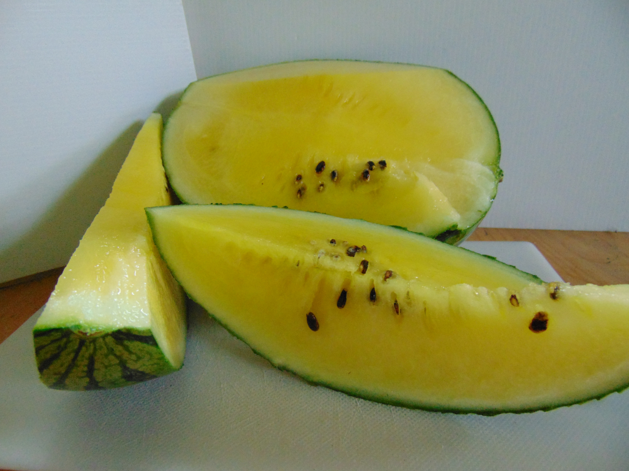 pastèque à chair jaune sucrée et peau verte, calibre 1,5 kg à 1,8 kg, produit en agriculture conventionnelle raisonnée