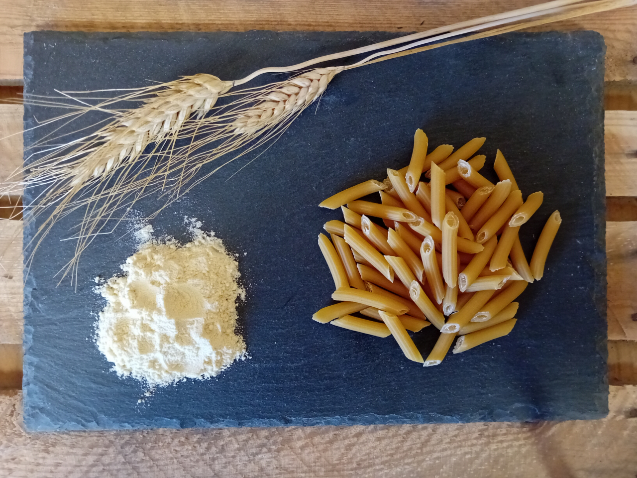 Blé dur cultivé sur notre exploitation, et transformé artisanalement en pâtes dans notre local de fabrication à Javron les Chapelles.
