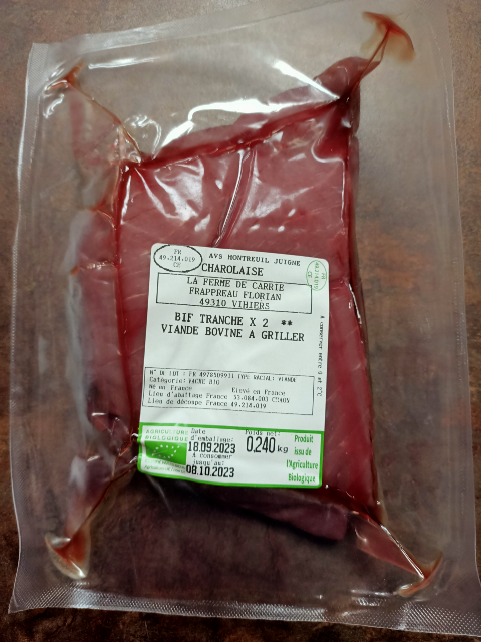 Viande bovine de race Charolaise en Agriculture Biologique.