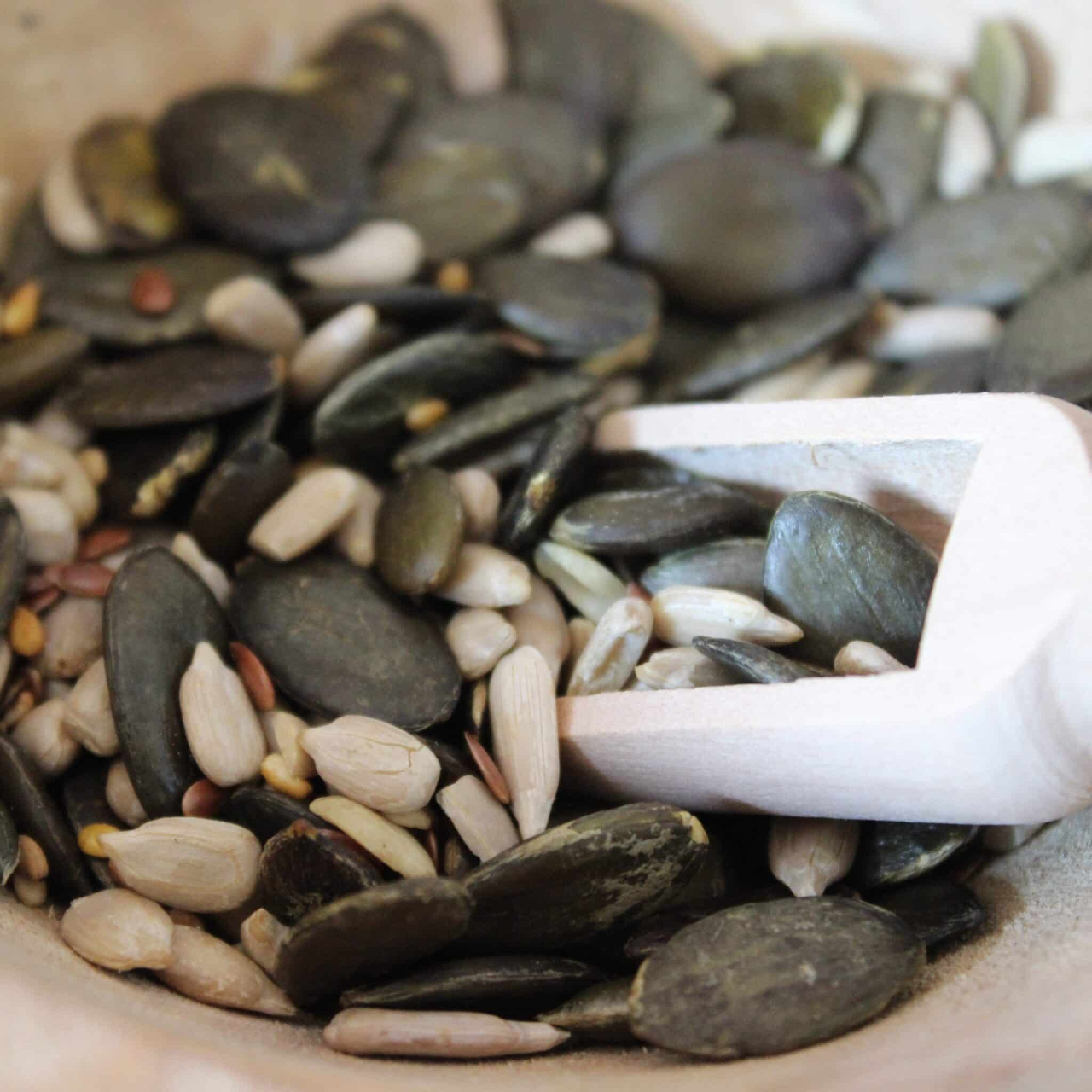 Ingrédients : Courges, tournesol, lin, sésame doré, graine de Chia, sésame grillé au curry