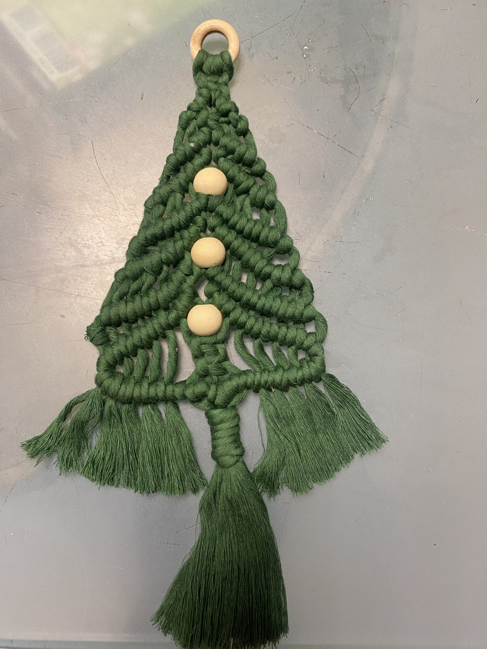 Sapin avec perles en macramé d’environ 29 cm à suspendre ou à poser sur une table .