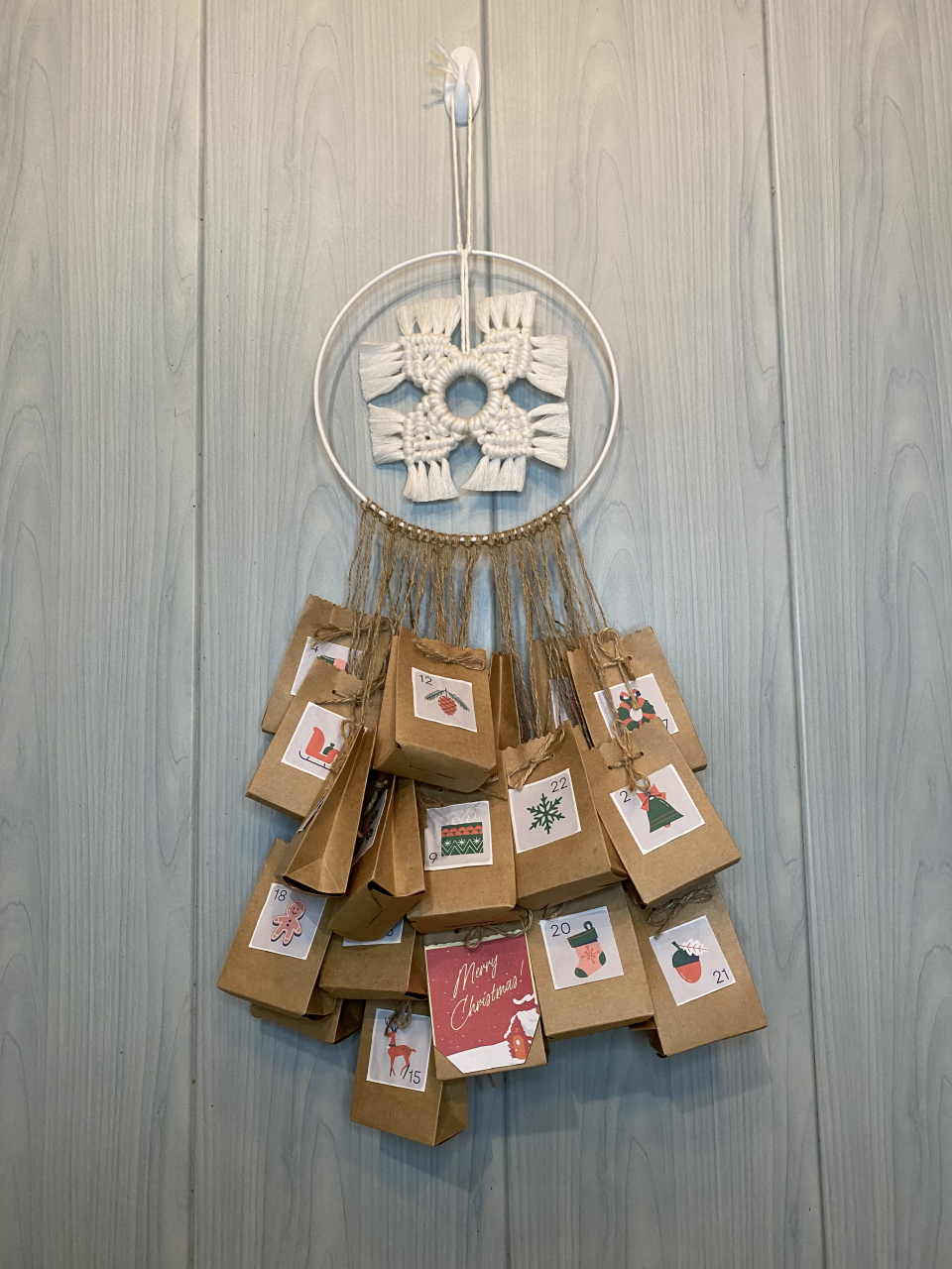 Calendrier de l’avent style bohème 25 pochettes kraft à garnir .