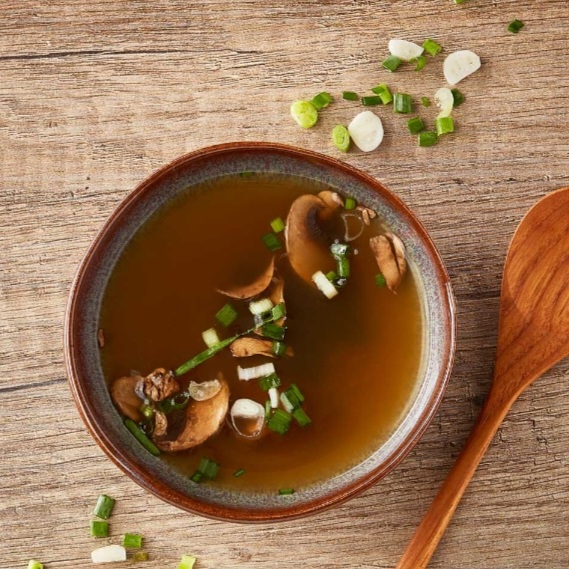 Bouill'on d'amour : Bouillon de volaille bio, champignons de paris, gingembre frais.