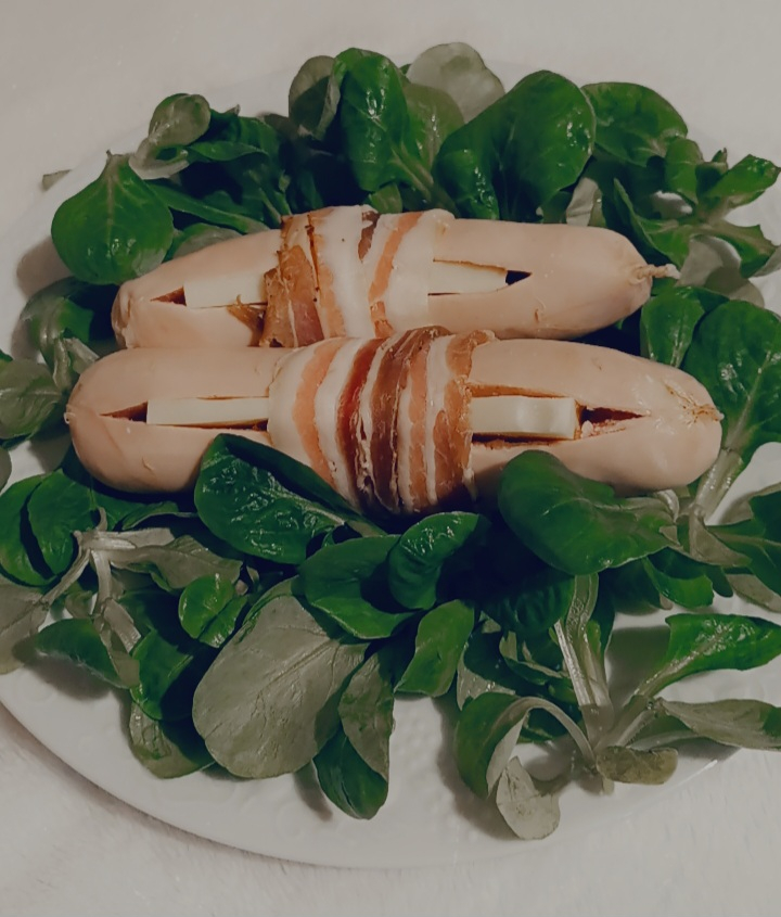 Sachet de 2 cervelas alsacien d'environ 150gr pièce. Un petit cervelas fourré de fromage et entouré d'une tranche de lard fumé. Cuire au four à 180° pendant 20 min.