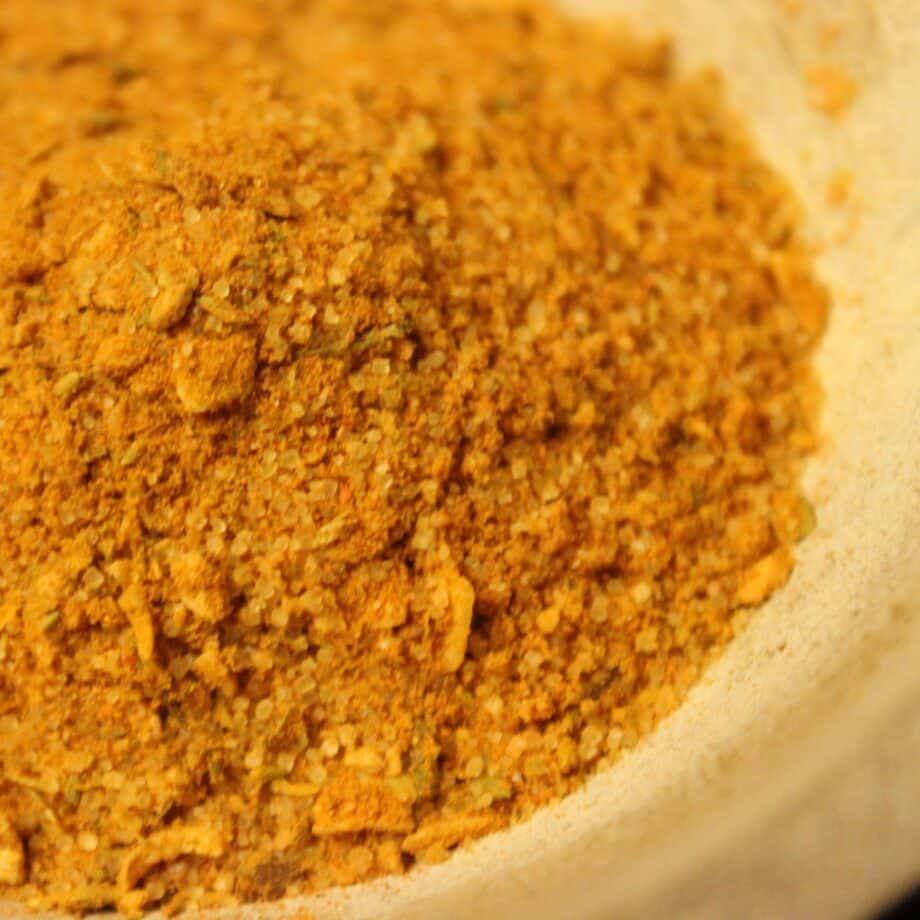 Conditionnement : Sachet Kraft alimentaire Durée de conservation : 2 ans Ingrédients : Sucre blond*, Sel, Curry*, Paprika*, Ail*, Oignon*, Cumin*, Origan*, Gingembre* Origine : UE / NON UE
