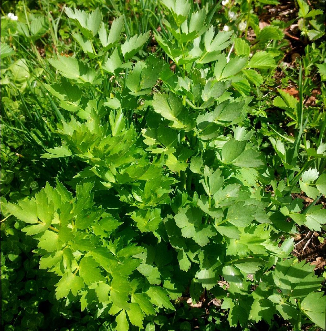 Ses grandes feuilles brillantes, vert foncé dégagent une forte odeur aromatique qui évoque le céleri.