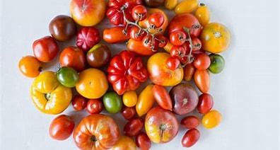Variété ancienne ( non F1) de tomate colorées allant du blanc au rouge en passant par le orange et le vert
