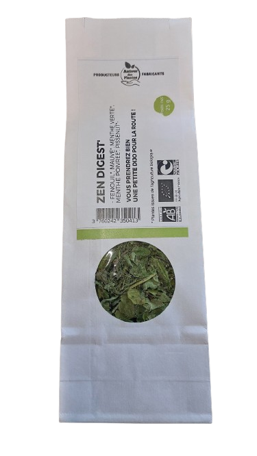 Repas trop gras, trop sucré, trop salé ? Pas de panique, nous connaissons les plantes pouvant venir à votre secours et avons réuni le meilleur d’entre elles et de leurs bienfaits dans notre tisane Zen Digest' ! Grâce à son action digestive et particulièrement efficace contre les maux de ventre, cette tisane naturelle est à avoir dans votre placard de cuisine tout au long de l’année pour réduire vos désagréments digestifs.