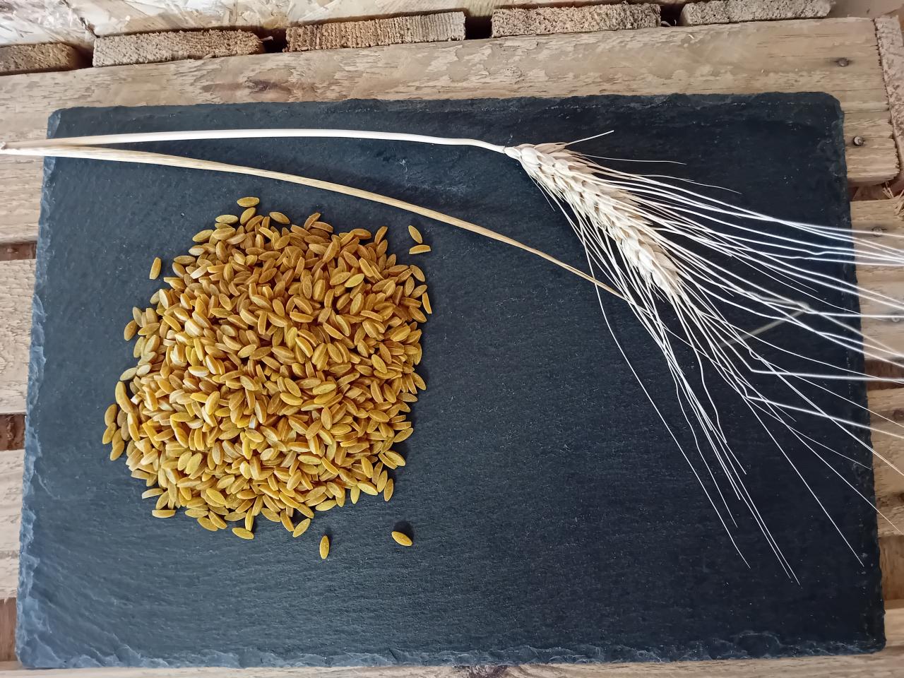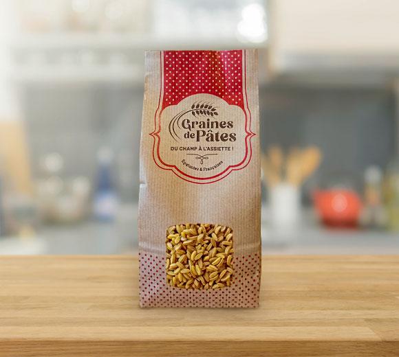 Blé dur cultivé sur notre exploitation, et transformé artisanalement en pâtes dans notre local de fabrication à Javron les Chapelles.