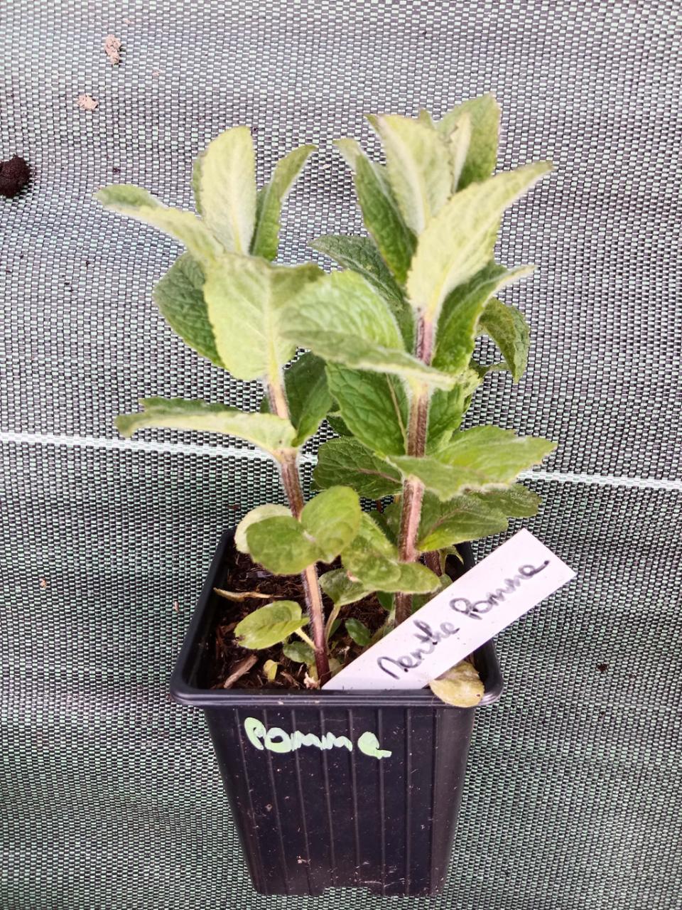 La menthe pomme (mentha suaveolens 'Apple mint') fait partie des variétés de menthes vertes. Elle a la caractéristique d'avoir les feuilles et les tiges recouvert d'un fin duvet. Son parfum très délicat rappelle celui de la pomme verte et de la menthe sauvage. C'est une plante aromatique parfaite pour les salades vertes, et les salades de fruits. On peut aussi l'utiliser pour parfumer des boissons rafraichissantes, des infusions ou des cocktails.