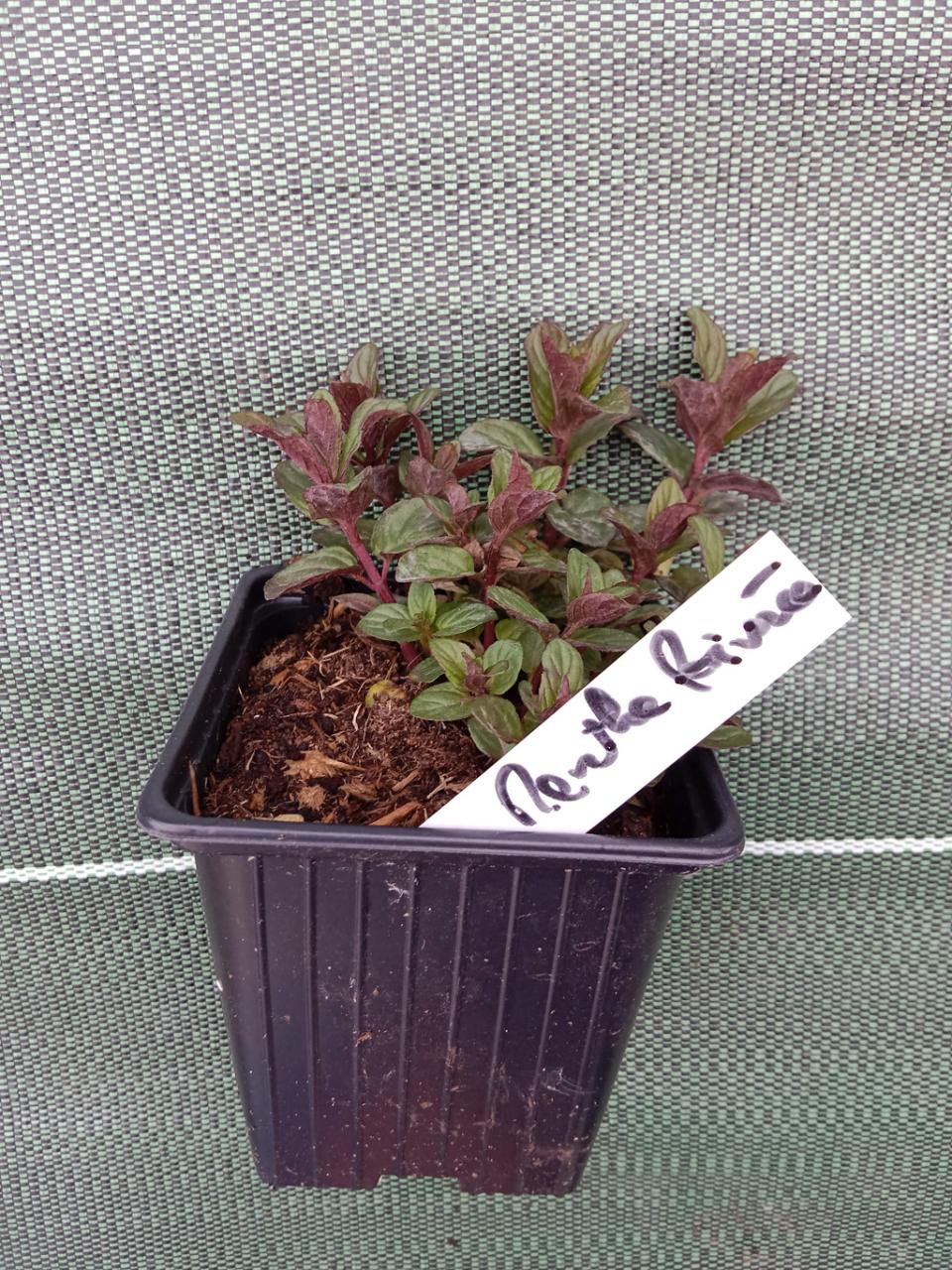 La menthe poivrée (Mentha x piperita) est un hybride naturel de menthe aquatique et de menthe verte à la senteur et au goût fort et piquant, le feuillage est plus foncé, les tiges dressées sont de couleur rougeâtre. C’est une des menthes les plus puissante au niveau du parfum. C'est la meilleure menthe pour soulager les maux de tête. Très intéressante aussi pour confectionner des cocktails ou des boissons rafraichissantes.