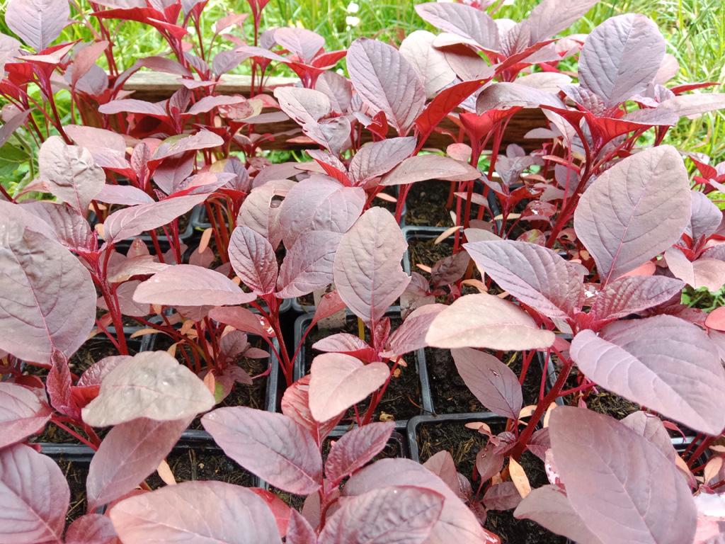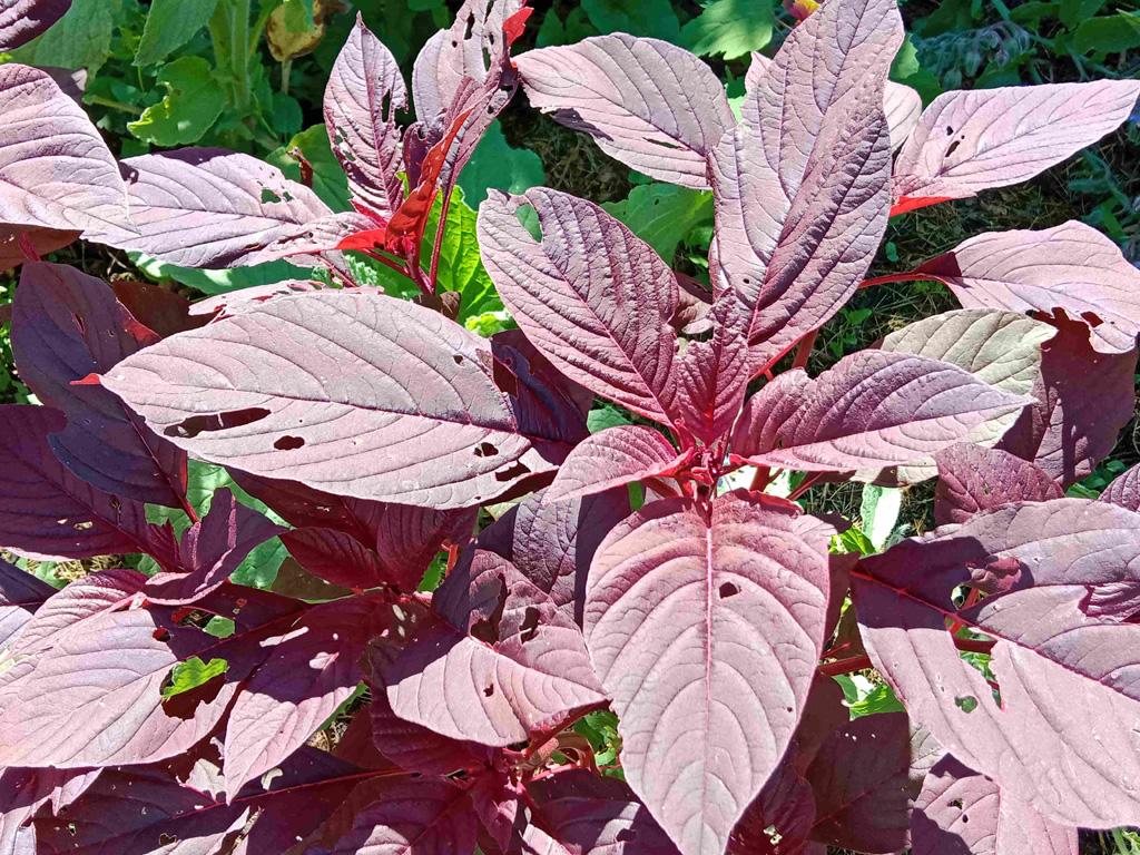 L'amarante rouge (Blitum red garnet) est une plante annuelle, dressée et très ramifiée de 30 à 80 cm. Ses feuilles rouge pourpre sont comestibles, aussi bien crues que cuites, comme des épinards. On les récolte feuille à feuille, en fonction de la croissance et des besoins. Les jeunes feuilles sont les plus tendres. On évite de récolter les feuilles une fois la plante en fleurs.
