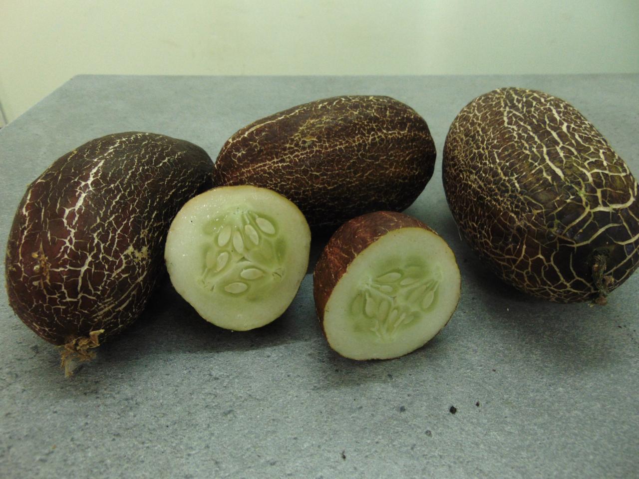 concombre ovale à peau noire, la chair est verte claire et très savoureuse, la peau ne se mange pas, produit en agriculture conventionnelle raisonée
