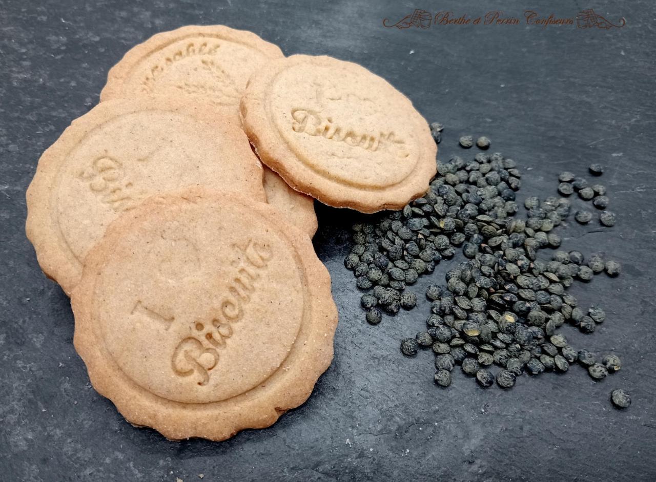 Un nouveau biscuit à découvrir alliant farine de blé et farine de lentilles vertes cultivées localement Par Thibault et Fanny à Vernantes. Un goût frais unique.