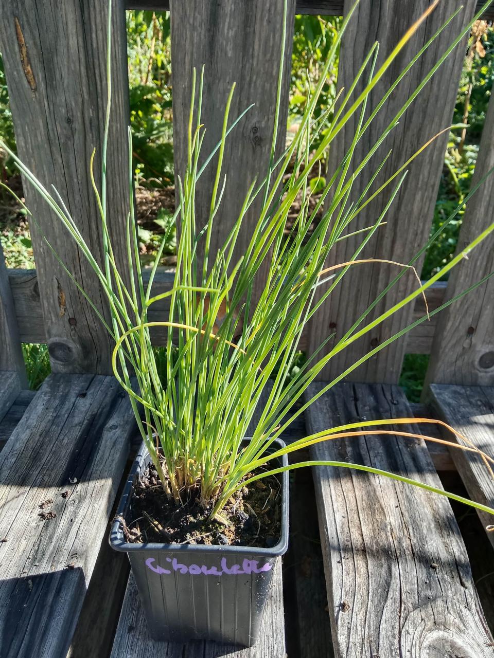 La ciboulette (Allium schoenoprasum) a un port en touffe de fines feuilles creuses et cylindriques. Sa floraison est en pompons roses violacés. C'est l'une des fines herbes idéales pour agrémenter les salades, omelettes ou fromages frais.