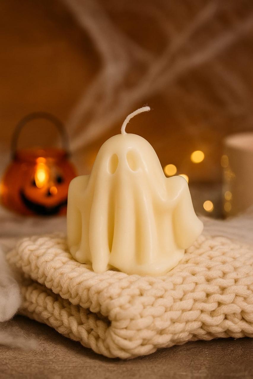 Plongez dans l'atmosphère enchanteresse de l'automne et d'halloween avec notre bougie décorative FANTOME