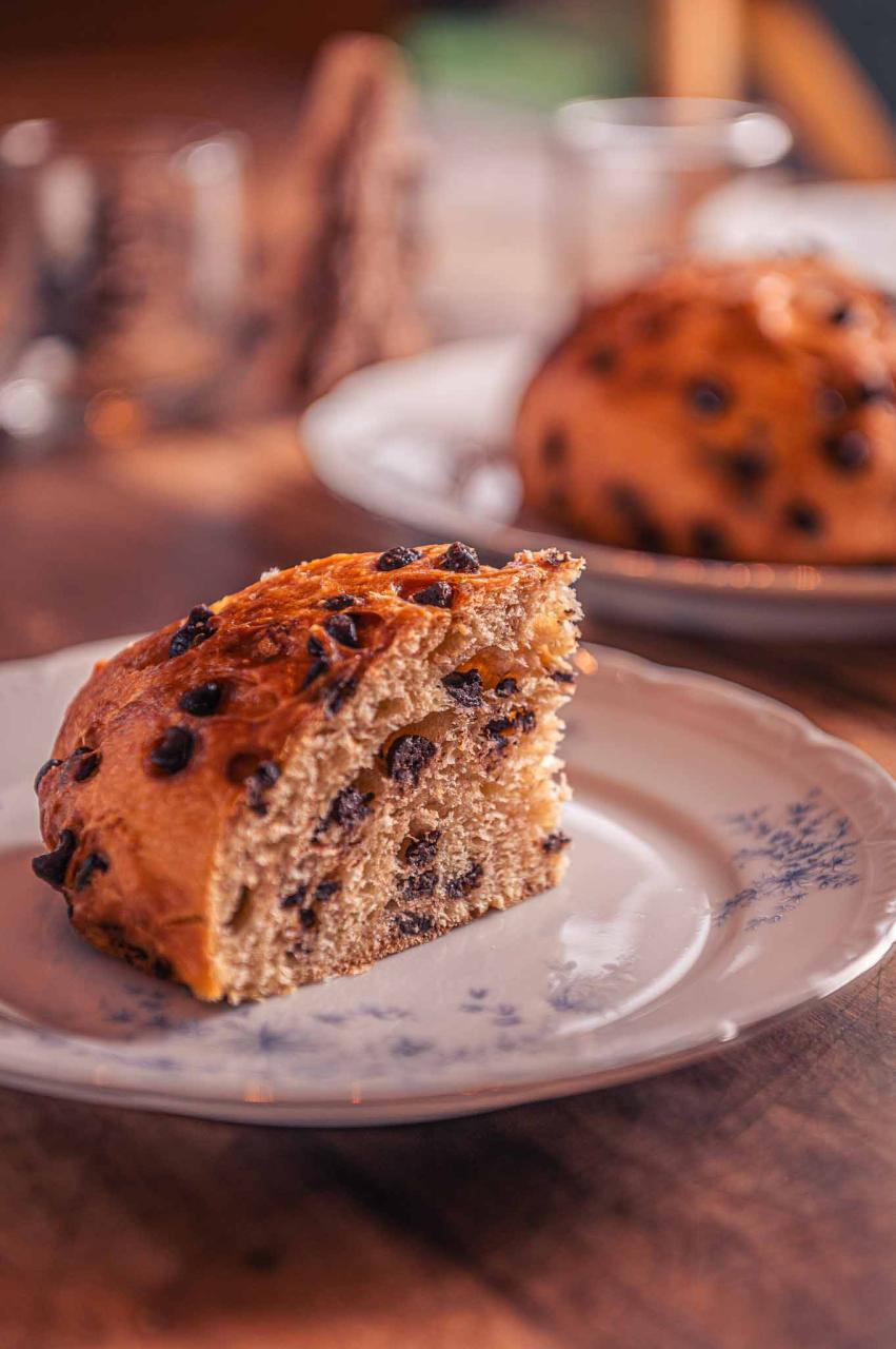 Une délicieuse et moelleuse brioche à la farine de tradition française non traitée, au bon beurre haut-savoyard, aux oeufs plein air des Monts du Lyonnais et au bon lait français, généreusement garnie de pépites de chocolat noir.