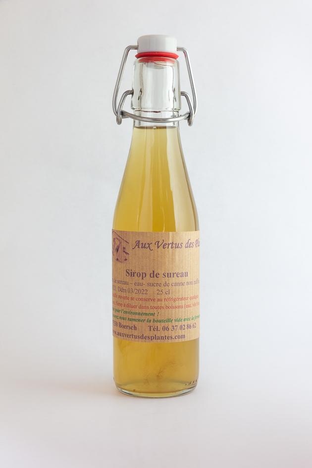 Ingrédients : Sureau de notre propre production, eau, sucre de canne non raffiné * et citron frais *