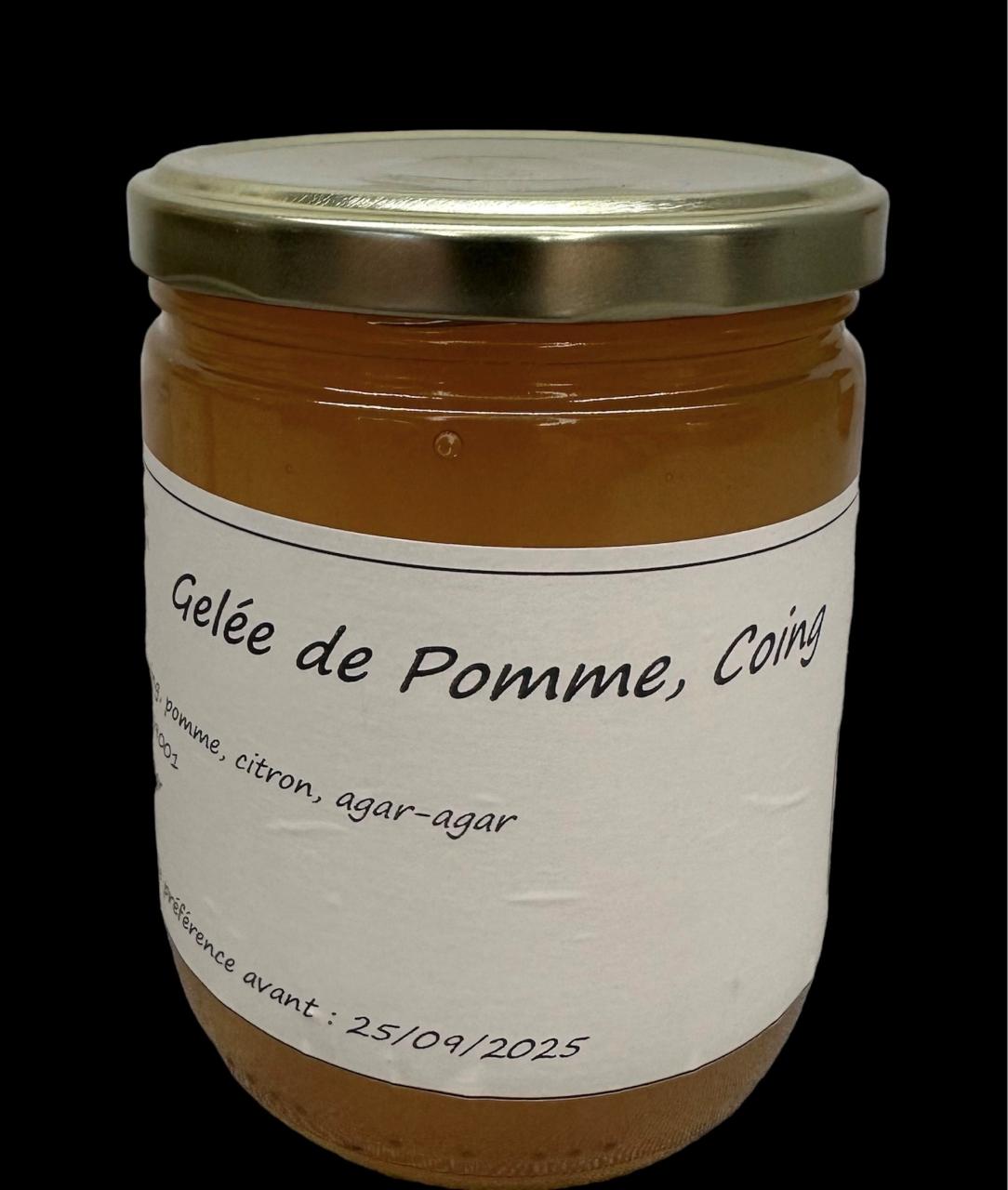 Allergènes : aucun Conditionnement : bocal en verre Durée de conservation : 24 mois DLUO Ingrédients : Coing, Pomme, sucre, agar agar Colorants ou arômes : néant Origine : jardin privé ( Alençon )