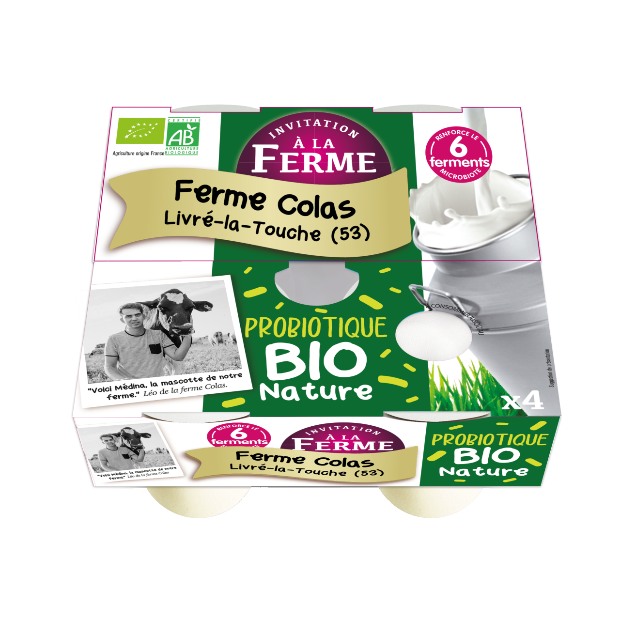 Allergènes : lactose Conditionnement : 4x125g Durée de conservation : 20 jours Ingrédients : "Lait de nos vaches pasteurisé et non homogénéisé, lait écrémé en poudre*, ferments lactiques (lactobacillus bulgaricus, streptococcus thermophilus) * Produits issus de l'Agriculture Biologique" Colorants ou arômes : aucun Origine : Livre la Touche (France)