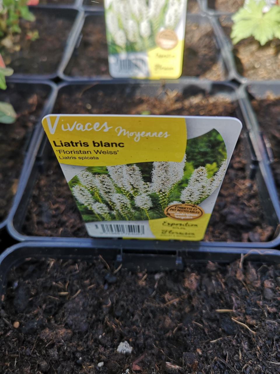 Plume du Kansas (Liatris) à fleurs blanche (actuellement non fleuri) en pot de 3 litres à planter au jardin. Vivace repousse chaque année.