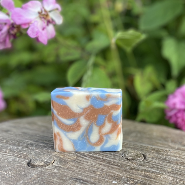 Ingrédients : Huile de Coco, Huile de Tournesol Oléique, Lait de Chèvre, Beurre de Karité, Huile d’Olive, Huile essentielle de Lavandin Grosso, Argile Rose, Oxyde Minéral Bleu.