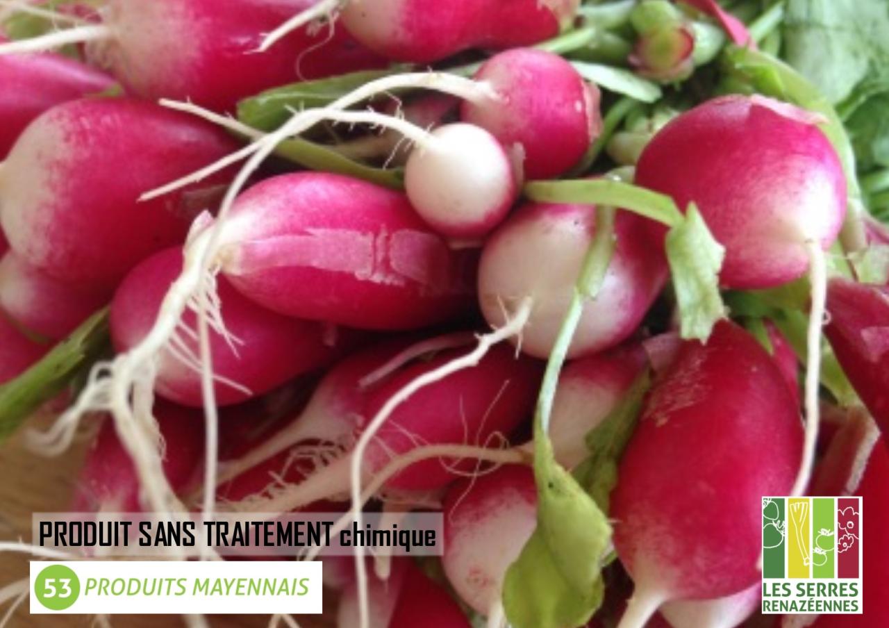 Produit sans traitement chimique. Le radis se consomme cru et ses fanes en potage. Le radis est un légume-racine riche en minéraux et oligo-éléments. Il aide à la reminéralisation de l'organisme, très efficacement