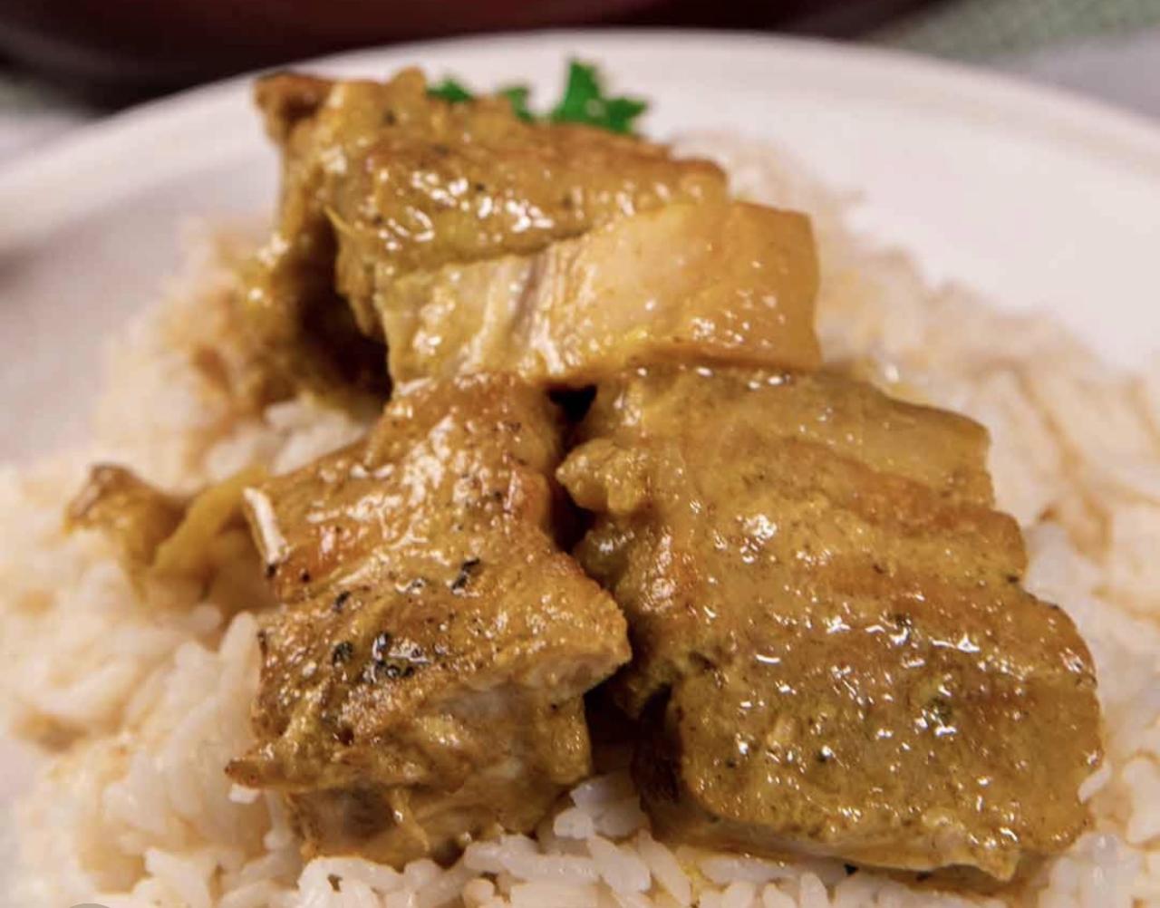 Ingrédients : Viande de porc, sel, huile, poivre, curry