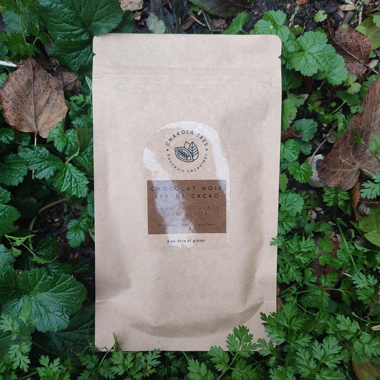 Ingrédients : chocolat noir 85% de cacao (fèves de cacao*, sucre de canne complet, beurre de cacao).