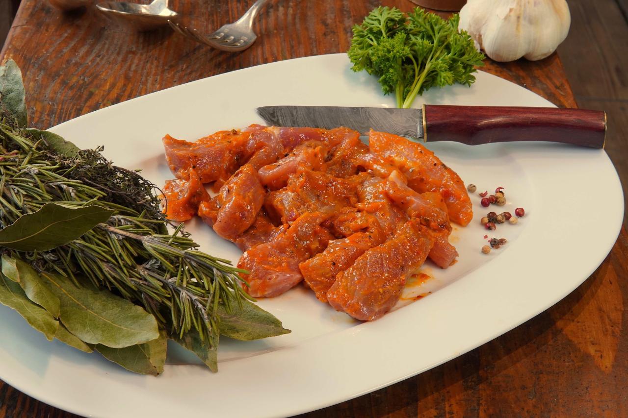Ingrédients : viande, marinade (Huile de tournesol, beurre, glucose, sel, oignon, levure, sucre, poivron, curcuma, citron, ail, fenouil, gingembre, poivre, canelle, coriandre, piments, cumin, cardamome)