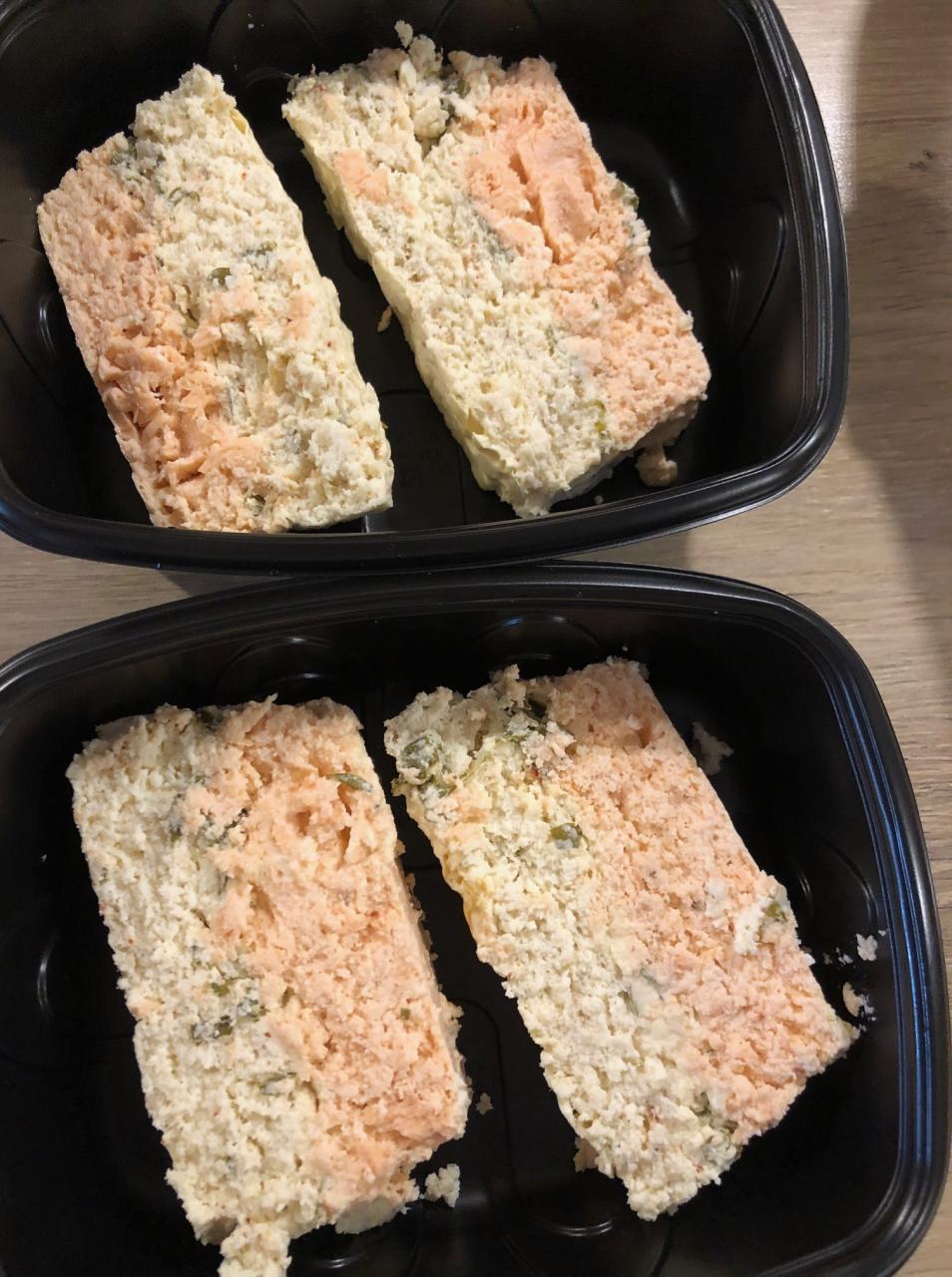 Terrine composée de poissons frais tel que saumon et poisson à chair blanche ici de la lingue,