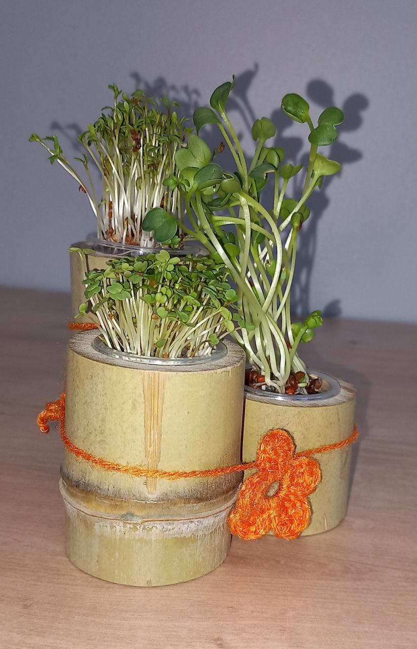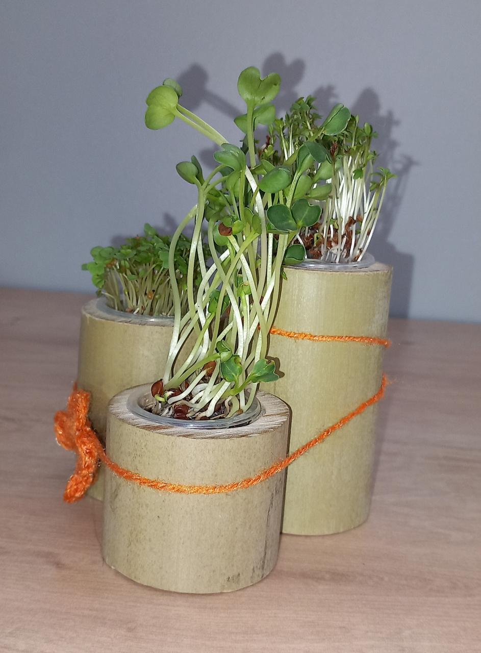 Trio de micro pousses composé de Radis Daïkon, Roquette et Cresson.