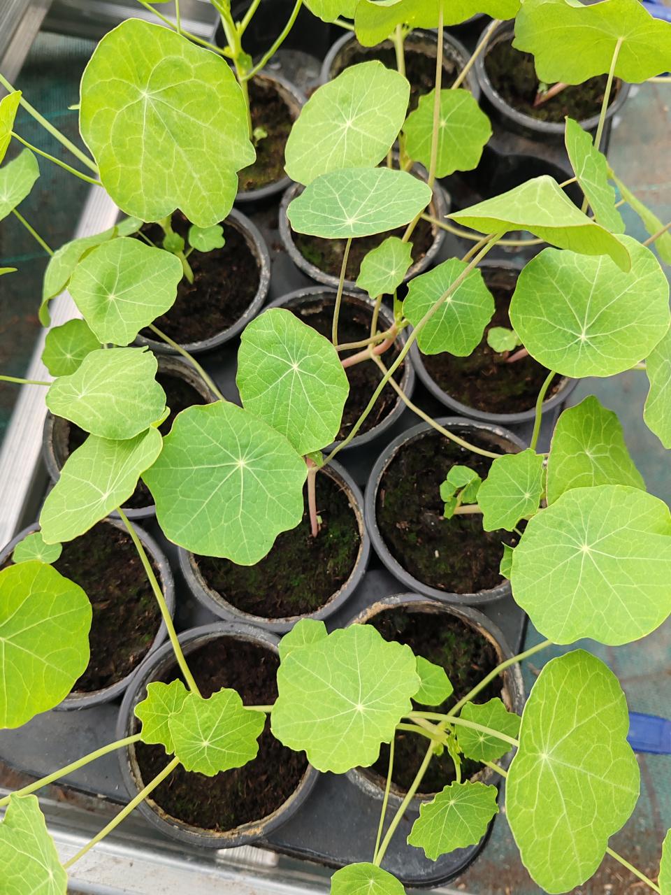 Très belle plante vivace. Grandes fleurs, irrégulières, rouge orangé. Reconnue aux milles vertus, médicinales mais aussi comestibles: fleurs et feuilles. Saveur piquante, proche du radis noir. Floraison de Juin à Octobre.